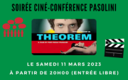 Laissez vous tenter par la soirée ciné-conférence Pasolini ! Samedi 11 mars à 20h L’Amicale Italia-Bretagne organise une seconde soirée dédiée à l’artiste Pier Paolo Pasolini (1922-1975) autour du film italien Theorem. Au programme Conférence en italien animée par Cristina Farigu Traduction par Antonella Carbone. Exposition des peintures de l’artiste…