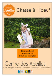 Le Centre des Abeilles donne rendez-vous à tous les enfants et leurs parents pour dénicher les œufs de Pâques qui seront cachés dans le Bois d’Amour. Cette année encore venez en famille participer à cette chasse à l’œuf qui prend pour circuit les différents repères utilisés sur le parcours de course d’orientation. Un goûter sera offert à tous les participants.