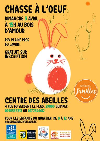 Rachel et toute l’équipe vous donne rendez-vous ce dimanche 3 avril à partir de 15h pour dénicher les œufs de Pâques qui seront cachés dans le Bois d’Amour.  Un goûter sera offert à tous les participants.