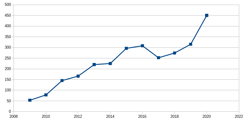 Voici l’évolution des distributions d’ordinateurs depuis 2008…UN GRAND MERCI AUX BENEVOLES !