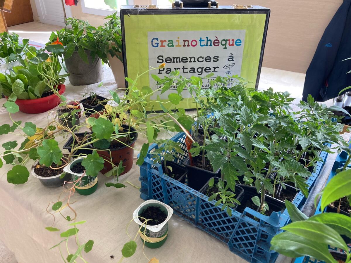Activités diverses avec Maryse autour de la grainothèque pour favoriser le lien social et participer à la biodiversité.