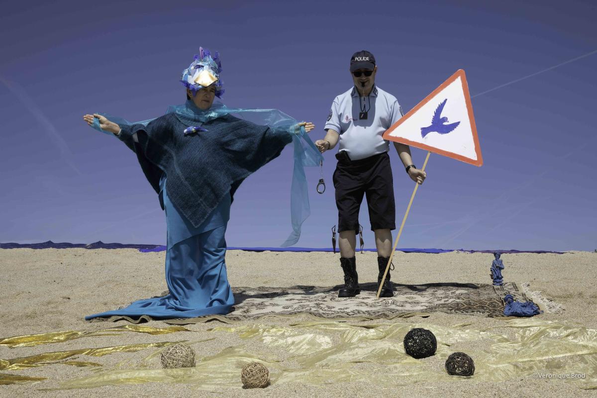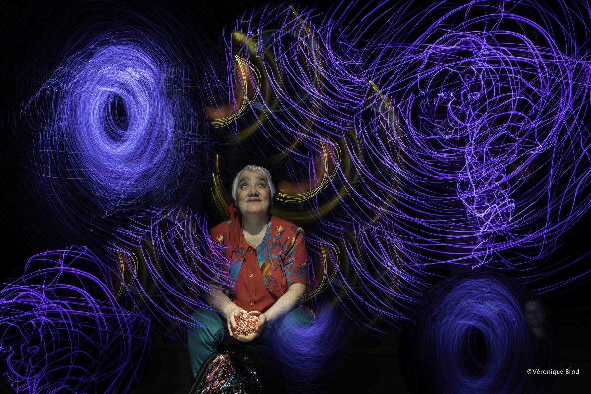 En février 2022, le projet a été présenté à des travailleurs d’ESAT en retraite, résidents du Foyer les Vergers puis s’est déroulé avec grand enthousiasme jusqu’en mai 2022. « Rêves en scène » s’est ainsi construit autour d’ateliers artistiques où chacun et chacune a dessiné son rêve. D’autres ateliers ont ensuite permis la conception des mises en scène au travers des dessins réalisés et la fabrication des décors. S’en sont suivies, la réalisation des mises en scène imaginées et les séances photo dédiées. Le projet nous a conduits dans différents univers mêlant la poésie des nuées bleues de la piscine et du ciel, à celle du hard rock. Il a aussi rassemblé des rêveurs-sportifs et des contemplatifs-rêveurs avec humour et délicatesse. « Rêves en scène » s’est déroulé dans le jardin et les couloirs du Foyer, dans les dunes de Trévignon, sur les scènes de la Chap’L et du Centre des Arts et de la Culture (CAC) de Concarneau pour donner forme à ces « tableaux vivants ». Il nous a émus, surpris et éblouis par les feux d’artifice qui deviennent des lueurs de light painting ou encore par les peluches soignées avec grand soin dans un univers d’une incroyable douceur.