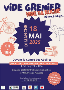 Le Centre des Abeilles et l’APE (association de parents d’élèves) de l’école Yves Le Manchec organisent un grand vide grenier sur la place des castors et ses rues voisines.